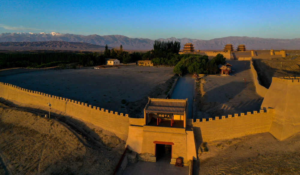 2023年7月19日拍攝的祁連雪山與嘉峪關(guān)關(guān)城。新華社記者 郎兵兵 攝