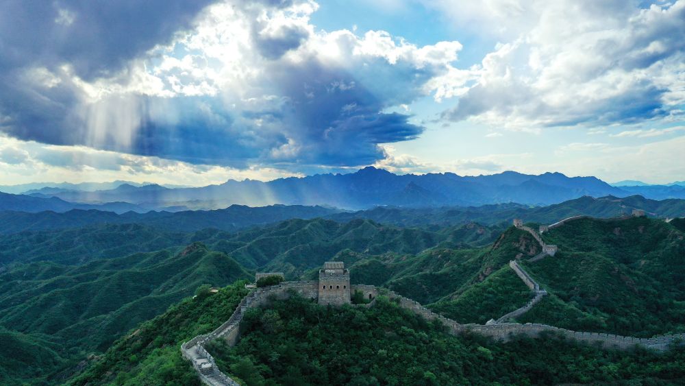 金山嶺長(zhǎng)城風(fēng)光(2023年8月31日攝,無人機(jī)照片)。新華社記者 牟宇 攝