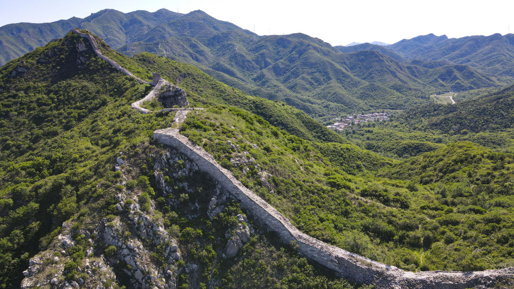 石峽關(guān)長(zhǎng)城和長(zhǎng)城腳下的石峽村(2024年6月1日攝,無人機(jī)照片)。新華社記者 陳鐘昊 攝