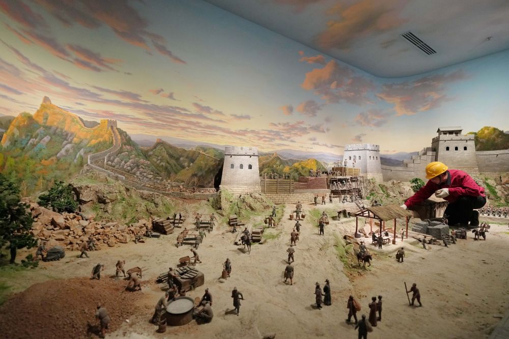 工人在山海關(guān)中國長(zhǎng)城博物館展廳布展(2024年4月11日攝)。新華社記者 楊世堯 攝
