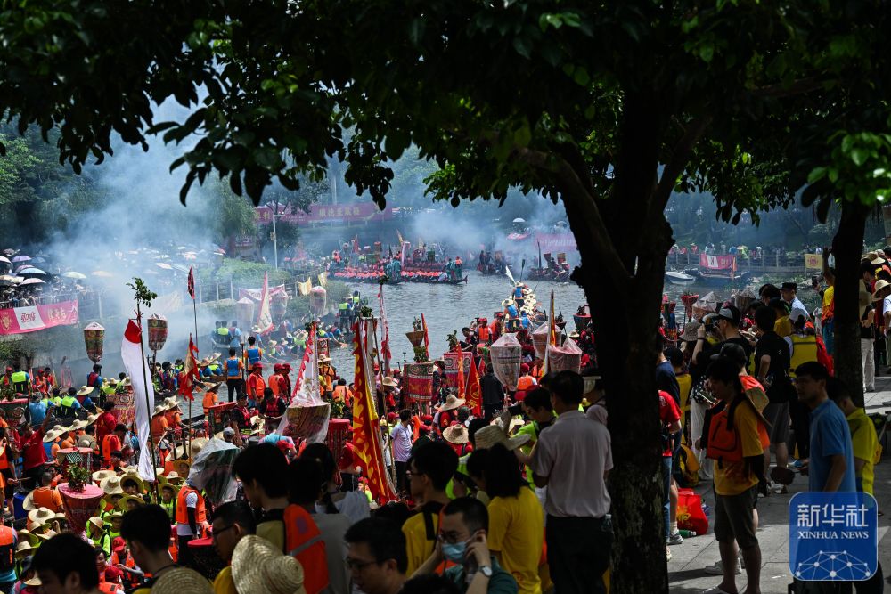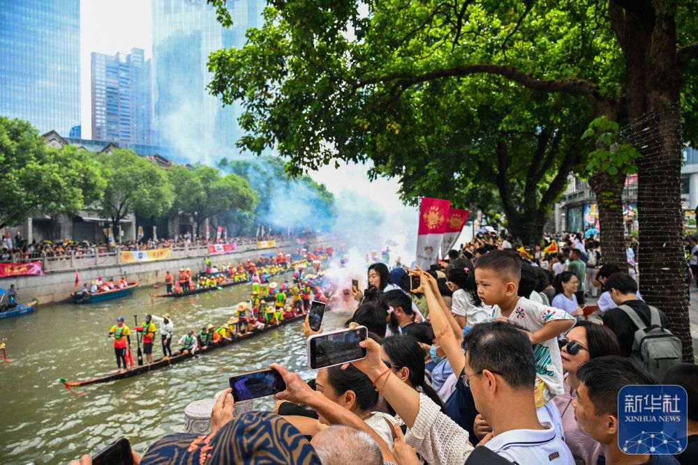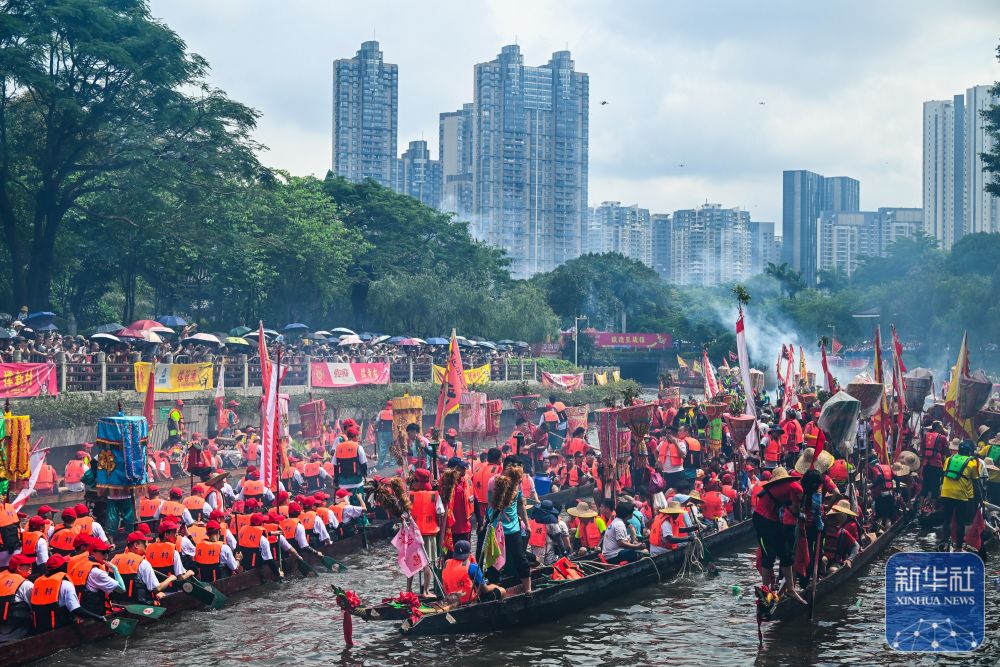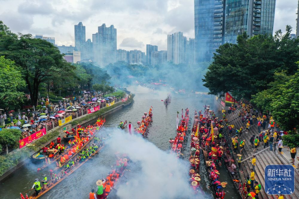 6月10日,國內(nèi)外游客匯聚在獵德觀賞“龍船景”?!褒埓啊笔菑V府地區(qū)水鄉(xiāng)在端午期間舉辦的一種民俗活動。