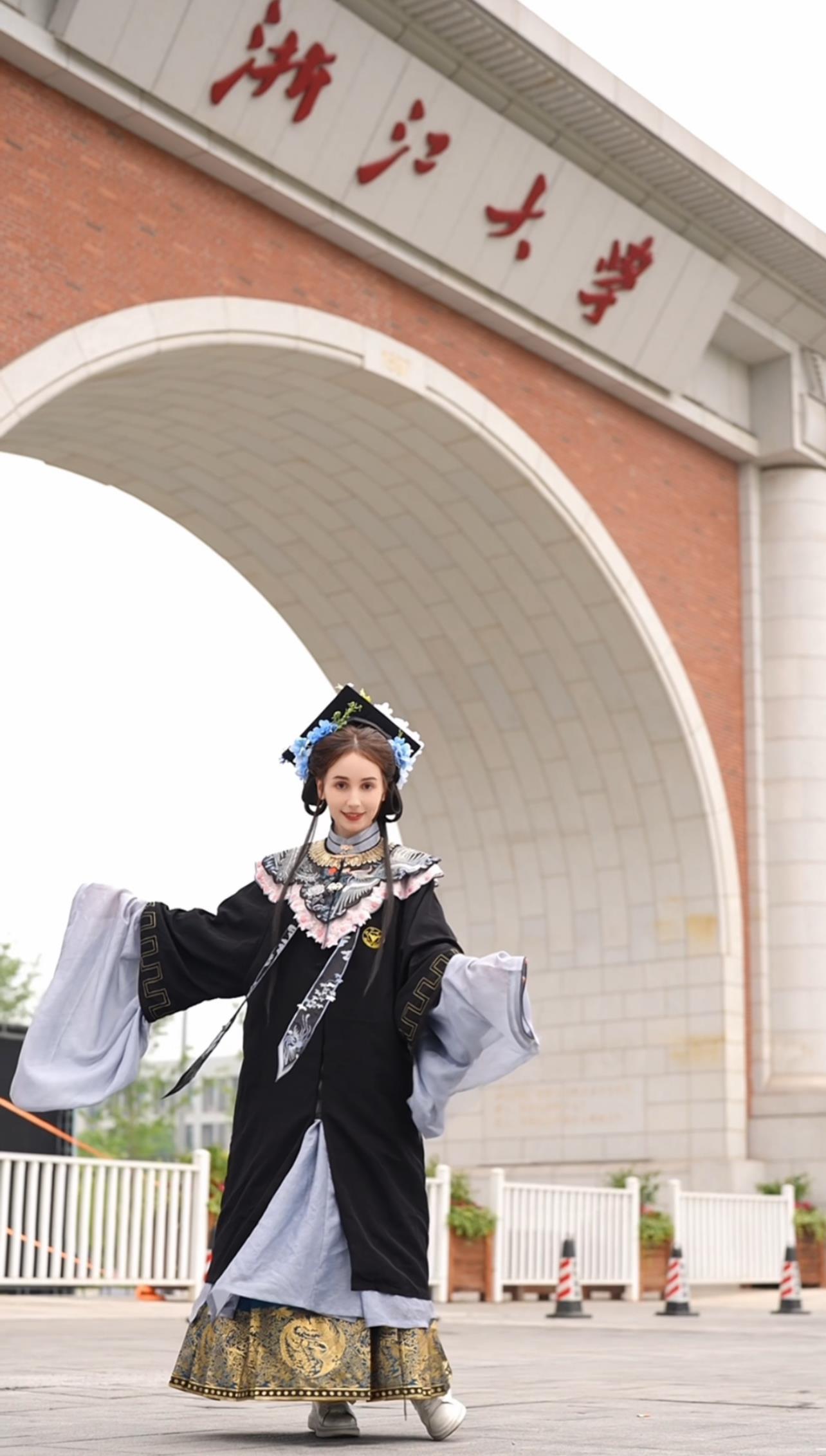 安心冉:所有的評論都在說很漂亮呀或者很適合你,或者恭喜你畢業(yè)了,我就覺得很感動。因為我是讀元明清文學(xué),能穿明代的衣服畢業(yè),我很開心。我穿的那套學(xué)士服云肩的形狀就是四合如意,蘊含了人生順?biāo)斓拿篮米8?。胸前的圖案是丹鳳朝陽,它寓意著賢德的人前途光明。我覺得中國的學(xué)士服比西方的學(xué)士服更有意義。