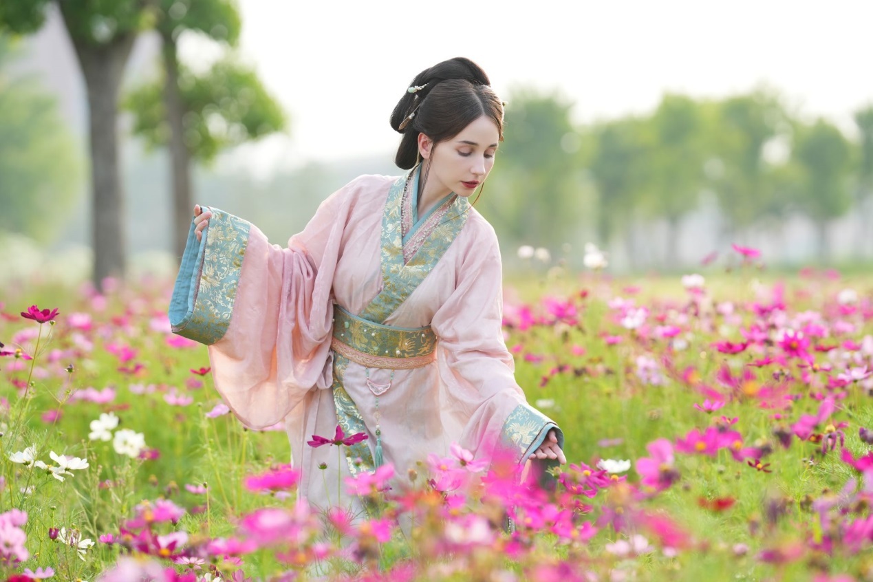 在假期里,安心冉喜歡穿著不同年代的漢服在中國各地旅游拍照、拍視頻,讓她感覺與環(huán)境融為了一體,仿佛穿越到了古代。