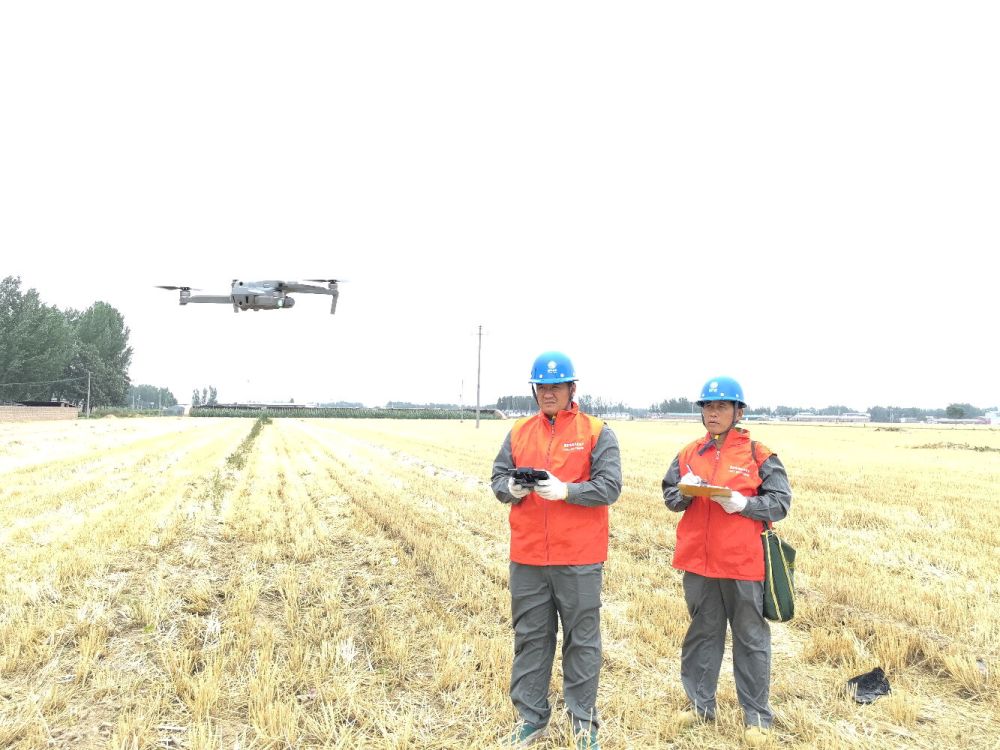 2024年6月13日,河北省臨漳縣供電公司工作人員在麥田中檢查涉農(nóng)用電線路。新華社記者趙鴻宇 攝