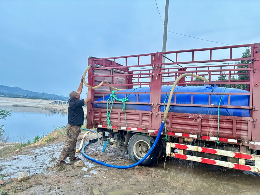 2024年6月11日,山東省臨沂市蒙陰縣野店鎮(zhèn),村民從水庫中抽水后前往果園灌溉。新華社記者高天 攝
