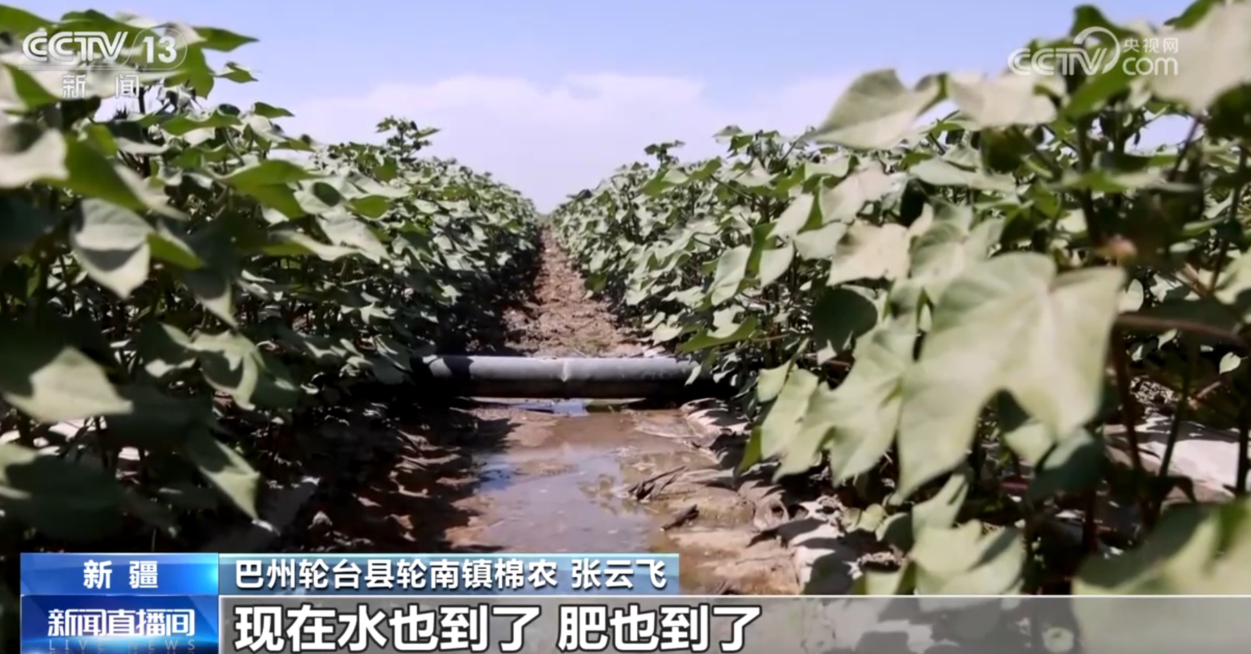 巴州輪臺(tái)縣輪南鎮(zhèn)棉農(nóng)張?jiān)骑w稱(chēng):“現(xiàn)在正是對(duì)水肥需求的高峰期,正好塔里木河的水來(lái)得非常及時(shí),現(xiàn)在水也到了,肥也到了,棉花長(zhǎng)勢(shì)非常好。”