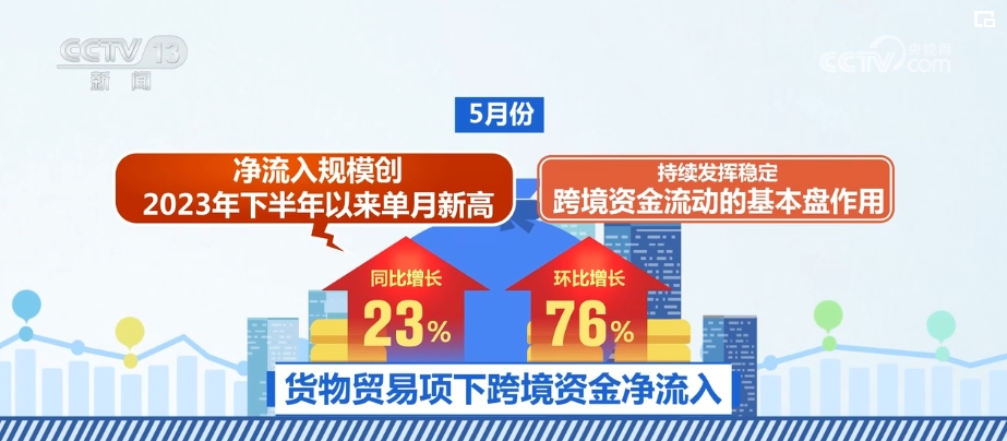 5月份,貨物貿(mào)易項(xiàng)下跨境資金凈流入同比和環(huán)比分別增長(zhǎng)23%和76%,凈流入規(guī)模創(chuàng)2023年下半年以來單月新高,持續(xù)發(fā)揮穩(wěn)定跨境資金流動(dòng)的基本盤作用。同時(shí),外資配置人民幣資產(chǎn)意愿較強(qiáng),5月份,凈買入境內(nèi)債券320億美元,環(huán)比增長(zhǎng)86%,處于歷史較高水平。此外,境內(nèi)主體對(duì)外各類投資更加平穩(wěn)有序。
