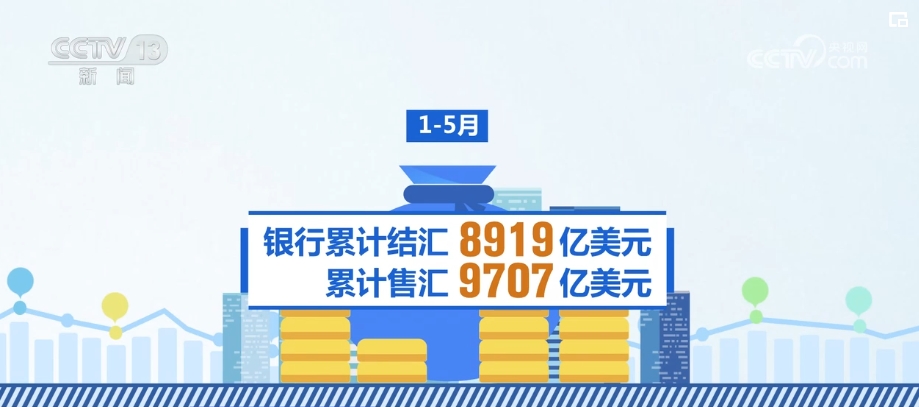 國(guó)家外匯管理局最新數(shù)據(jù)顯示,5月,銀行結(jié)匯1760億美元、售匯1919億美元;1—5月,銀行累計(jì)結(jié)匯8919億美元、累計(jì)售匯9707億美元。
