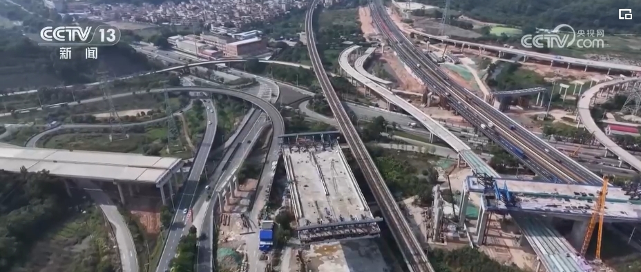 中開高速在河道縱橫交錯(cuò)、高速公路密度較高的珠三角地區(qū),橋隧比高達(dá)94%。其中,在跨越廣澳高速和廣珠城際的位置,橋梁施工遇到了最大難題,就是施工不能影響高速與城際的正常運(yùn)行。為此,施工單位建造一座單體轉(zhuǎn)體橋,通過橋體旋轉(zhuǎn),避免施工與正常行車形成沖突。