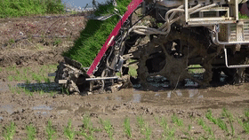 在湖北省陽新縣軍墾農場,以往在水稻田里穿梭的是9寸盤插秧機,今年改用了7寸盤插秧機。相較于9寸盤插秧機,它的展秧臺和插秧臂行距都縮減了5公分,插出來的秧苗行距也減少5公分??蓜e小看這5公分,陽新縣軍墾農場農戶朱曉毛說,這樣每畝水稻田可增加基本苗4000多穴,可增產200至300斤。