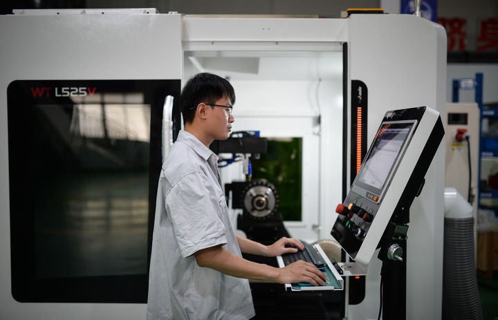 員工在位于廣東省佛山市的原點智能技術有限公司車間操作數(shù)控機床(5月16日攝)。新華社記者 李任滋 攝