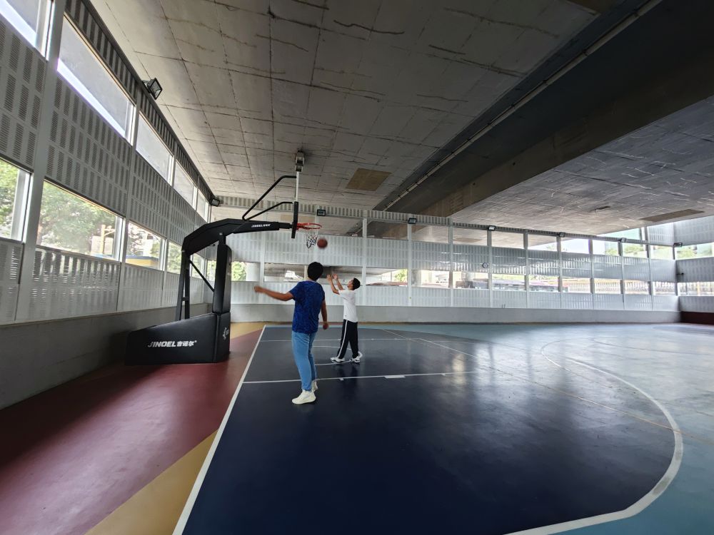 中學(xué)生在北京西城區(qū)天寧寺橋下空間籃球場運(yùn)動。 新華社記者陳旭 攝
