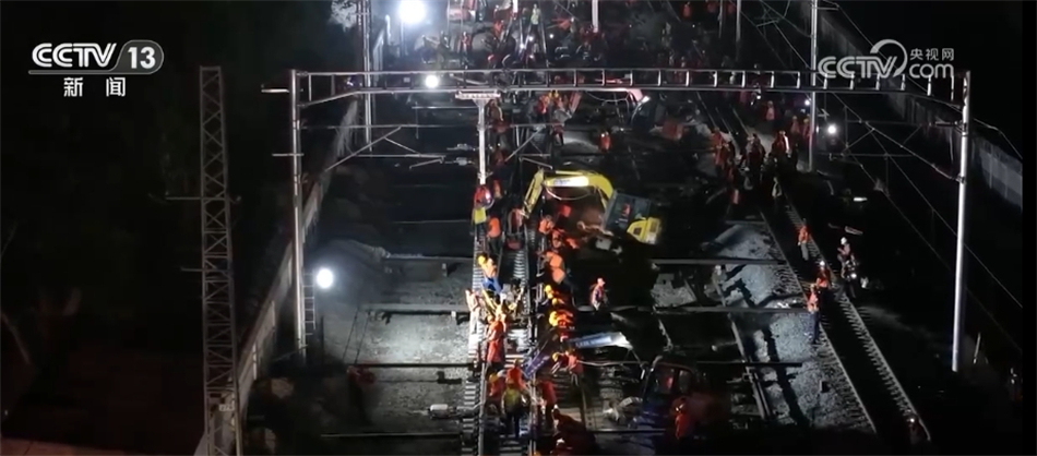 這是位于內(nèi)蒙古烏蘭察布境內(nèi)的集大原高鐵建設(shè)現(xiàn)場,經(jīng)過5個(gè)多小時(shí)的緊張施工,新建的集大原高鐵成功接入京包客運(yùn)專線烏蘭察布站。