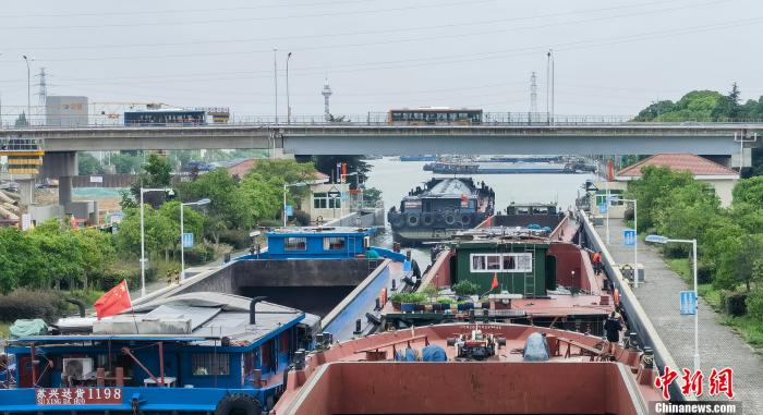 張濤介紹,之前蘇南蘇北運(yùn)河標(biāo)準(zhǔn)不一,過大船只無法駛?cè)胩K南段運(yùn)河,需在長(zhǎng)江過駁,把大船上的貨物通過小船分運(yùn)。改造完成之后,南北可以統(tǒng)一通航,既大大提高通航效率,也對(duì)長(zhǎng)江的生態(tài)環(huán)境起到重要保護(hù)作用。