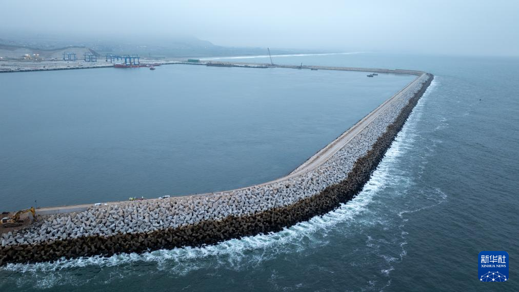 由中企控股和投資開發(fā)的錢凱港位于秘魯首都利馬以北的錢凱灣內。從空中俯瞰,約2.6公里長的防波堤像巨臂一般環(huán)抱住碼頭設施,以阻擋太平洋海浪的侵蝕。