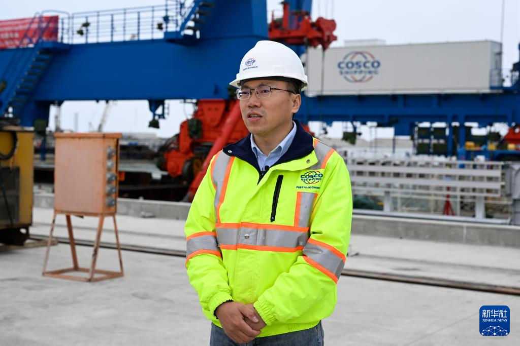 6月21日,在秘魯錢凱港,中遠海運港口秘魯錢凱公司常務副總經理何波接受新華社記者采訪。 新華社記者 李木子 攝