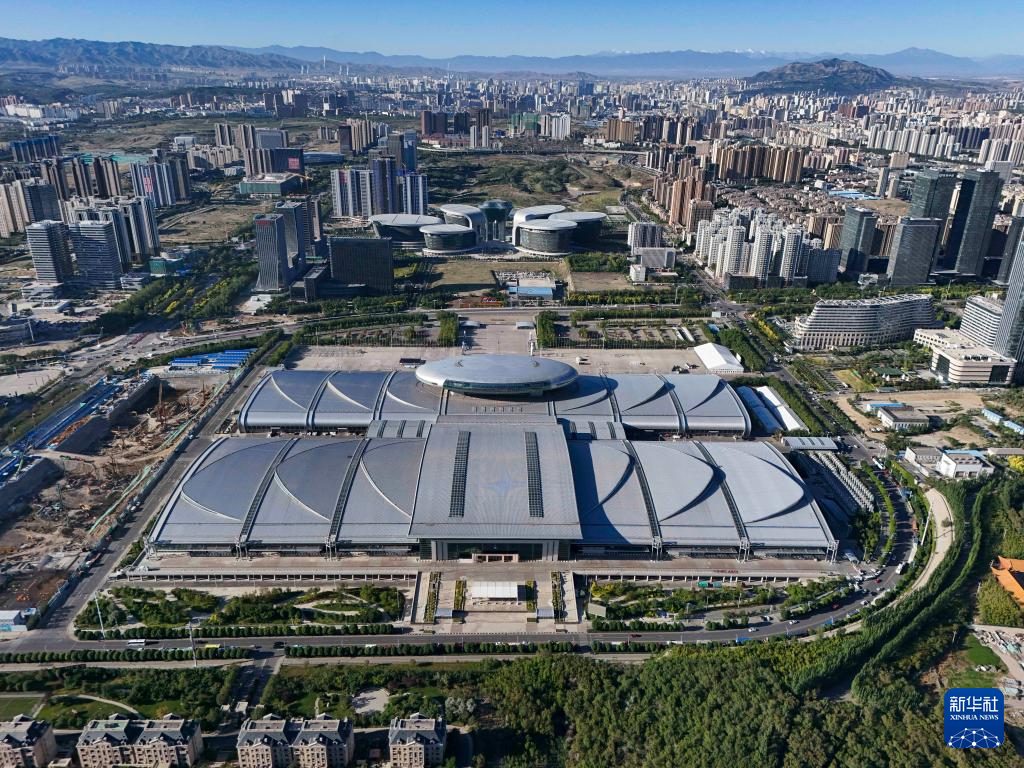 新疆國(guó)際會(huì)展中心及周邊城區(qū)景觀(2024年6月21日攝,無(wú)人機(jī)照片)。新華社記者 胡虎虎 攝