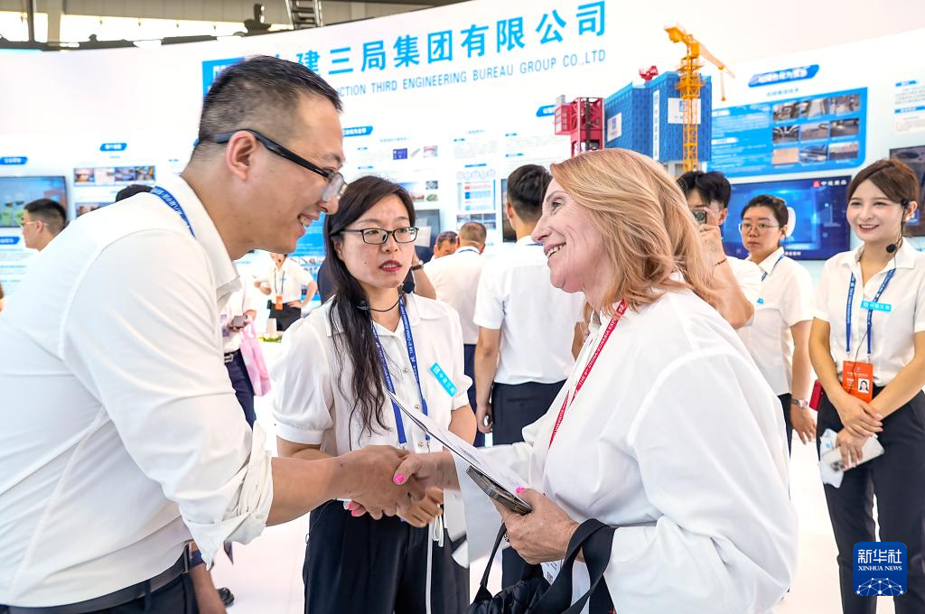 2024年6月27日,在第八屆中國(guó)—亞歐博覽會(huì)上,吉爾吉斯斯坦企業(yè)客商(前右)與中建三局參展商初步達(dá)成協(xié)議。新華社記者 王菲 攝