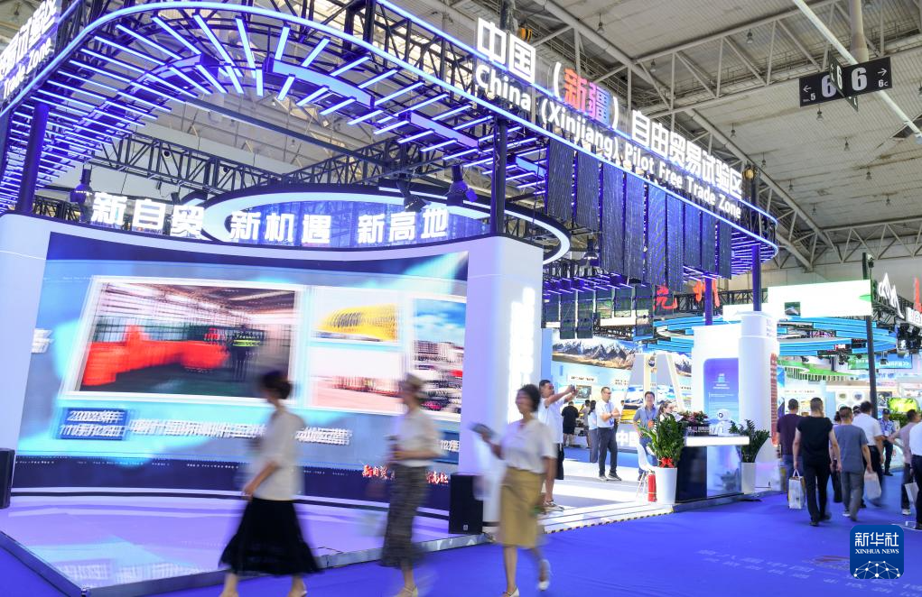 2024年6月27日,在第八屆中國(guó)—亞歐博覽會(huì)上,觀眾在中國(guó)(新疆)自由貿(mào)易試驗(yàn)區(qū)展臺(tái)參觀。新華社記者 王菲 攝