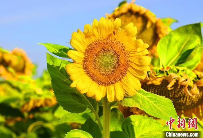 7月2日,走進(jìn)新疆鐵門關(guān)市二十一團(tuán),一眼望不到邊的向日葵正大面積綻放,構(gòu)成一幅美麗的壯觀畫卷。白克斌 攝