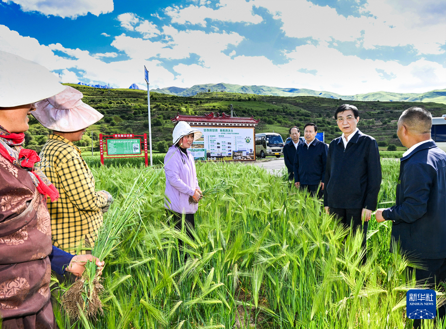 7月1日至3日,中共中央政治局常委、全國(guó)政協(xié)主席王滬寧在四川甘孜、阿壩調(diào)研。這是7月1日王滬寧在甘孜縣了解青稞生產(chǎn)情況。新華社記者 饒愛民 攝