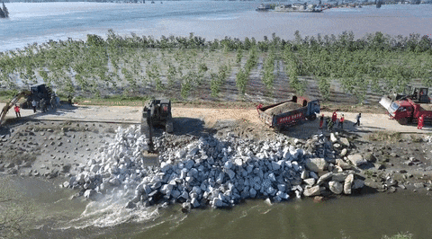 今天凌晨,總臺記者在現場看到有武警、消防、民兵等救援力量和很多大型設備車輛。記者了解到,5日晚,決堤口已延伸至約100米,今天凌晨,決堤口已經延伸至約150米。
