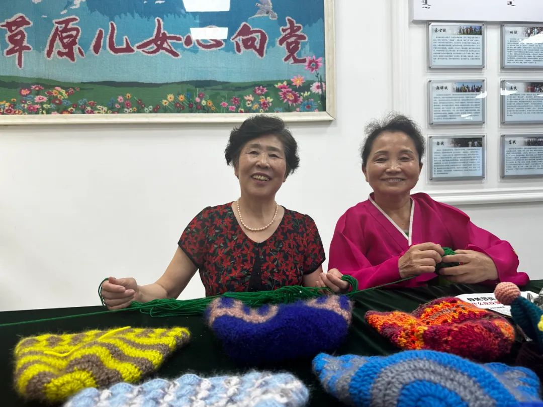 民族工藝傳承區(qū)里,志愿者高娃帶領(lǐng)圍坐桌前的“同學(xué)們”編織各類毛線織品,絲線繡出來的花鳥圖案引起記者們的注意。朝鮮族居民李貞子和漢族居民劉海燕是“老搭檔”,屬于“零基礎(chǔ)”學(xué)員的她們連續(xù)多年堅(jiān)持每周上課,即便沒有課程也會(huì)來活動(dòng)中心相互切磋?,F(xiàn)在,課堂上教過的各式民族工藝織品,二人都能信手拈來。