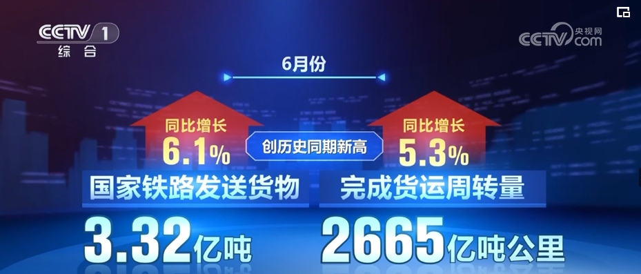 記者7月14日從國鐵集團(tuán)獲悉,6月份,國家鐵路發(fā)送貨物3.32億噸,完成貨運(yùn)周轉(zhuǎn)量2665億噸公里,同比分別增長6.1%、5.3%,創(chuàng)歷史同期新高。