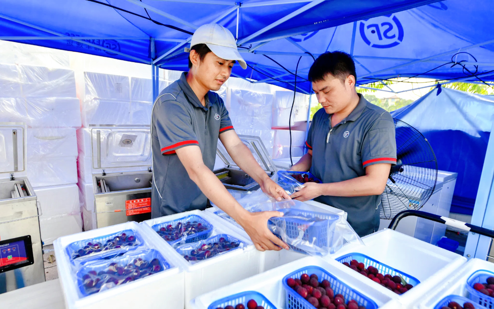 浙江湖州,快遞進(jìn)村運(yùn)楊梅