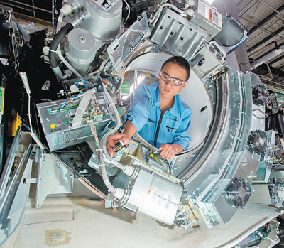 北京經(jīng)濟技術開發(fā)區(qū)永昌北路1號,通用電氣醫(yī)療北京影像設備制造基地(以下簡稱“北京生產(chǎn)基地”),生產(chǎn)線上機器轟鳴,一臺臺醫(yī)療器械陸續(xù)完成裝配。通用電氣醫(yī)療在全球銷售的每三臺CT機中就有2臺產(chǎn)自這里,產(chǎn)品銷往全球100多個國家和地區(qū)。