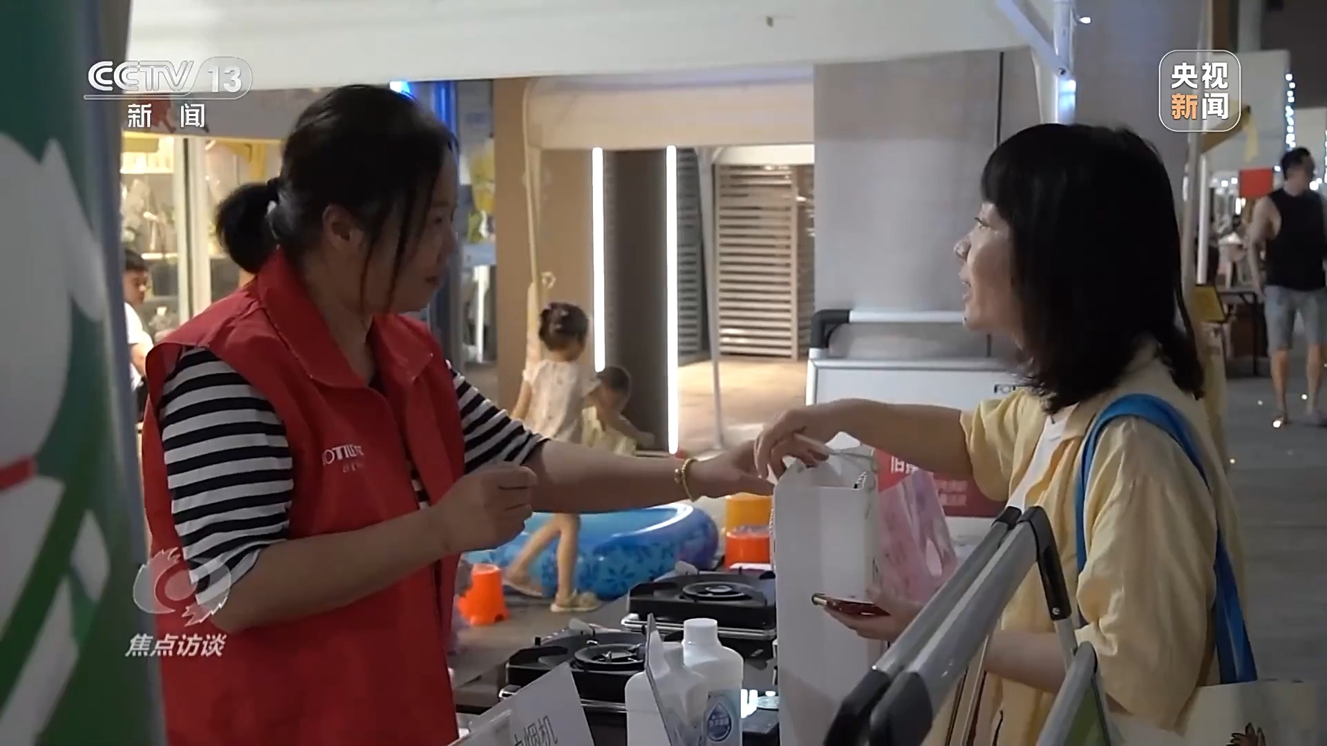 在上海,家電“以舊換新”夜市開到了社區(qū)里,居民在家門口就能了解補(bǔ)貼政策,選購商品。