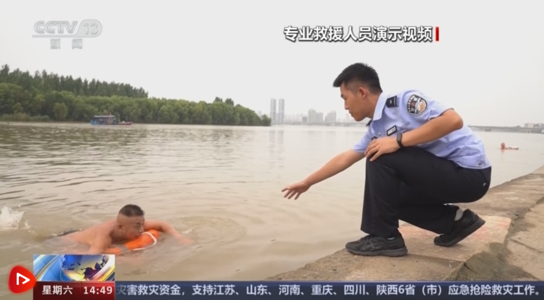 襄陽(yáng)市襄城區(qū)公安分局民警高培龍介紹,大家如果發(fā)現(xiàn)有人落水,不要盲目施救,首先尋找救生衣、救生圈進(jìn)行施救,千萬(wàn)不要手拉手地施救,防治一起溺水??梢缘桨哆厡ふ议L(zhǎng)竹竿,將溺水者拖上岸。