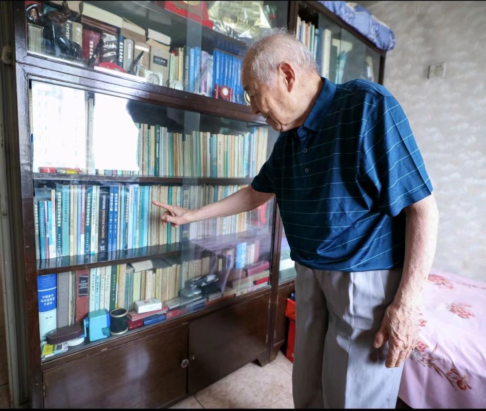 2024年7月9日方華燦介紹曾經編寫的教材。新華社發(fā)