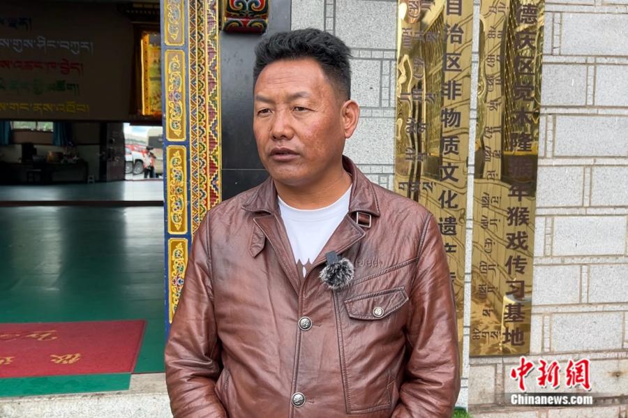 覺木隆藏戲現(xiàn)任團長、西藏自治區(qū)級非遺代表性傳承人洛桑扎西。 中新網(wǎng)記者 陳文韜 攝