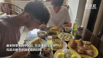 今年暑假剛開始,迪米特里就迫不及待地隨團來到中國,住在潘韜宇家中,沉浸式感受中國家庭的日常。從品嘗特色小吃、共同學(xué)做中國菜,到一起打籃球、打游戲,線下的深入接觸讓兩人的友誼進一步升溫。