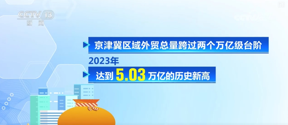 京津冀區(qū)域外貿(mào)總量跨過兩個(gè)萬億級(jí)臺(tái)階,2023年達(dá)到5.03萬億元的歷史新高。