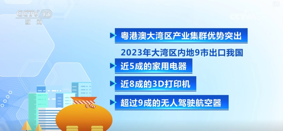 粵港澳大灣區(qū)產(chǎn)業(yè)集群優(yōu)勢(shì)突出,2023年,大灣區(qū)內(nèi)地9市出口了我國(guó)近五成的家用電器、近八成的3D打印機(jī)和超過九成的無人駕駛航空器。