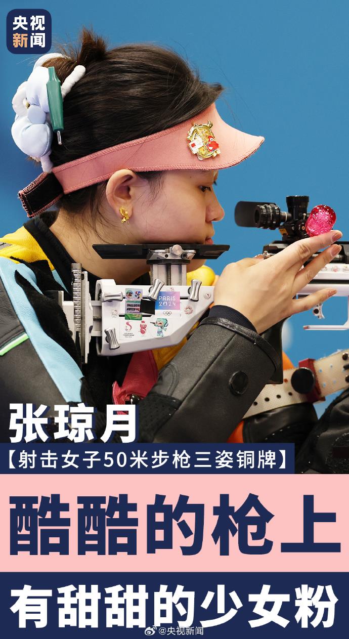 8月2日,在巴黎奧運(yùn)會(huì)射擊女子50米步槍三姿決賽中,中國(guó)選手張瓊月奪得銅牌。戴著粉色帽子的張瓊月,步槍上貼滿(mǎn)可愛(ài)的Hello Kitty貼紙,用最萌的裝備打最穩(wěn)的槍?zhuān)?/p>