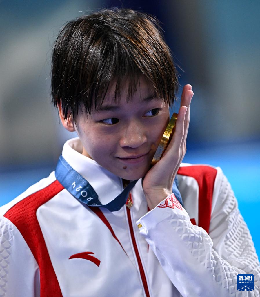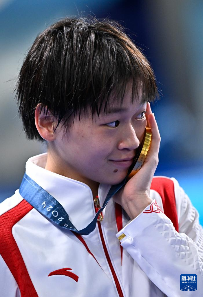 8月6日,全紅嬋在頒獎儀式后。新華社記者 王鵬 攝