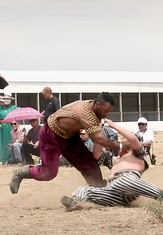 阿斯琴:包括腰力、轉(zhuǎn)動能力和手臂的力量。(牧民的傳統(tǒng))馴馬、馴牛、馴駱駝,不能用蠻力,要有巧勁,要有這方面的天賦才行。比賽規(guī)則就是單排淘汰,倒了就不能再上了。一跤定勝負,這是它摔跤的特點。