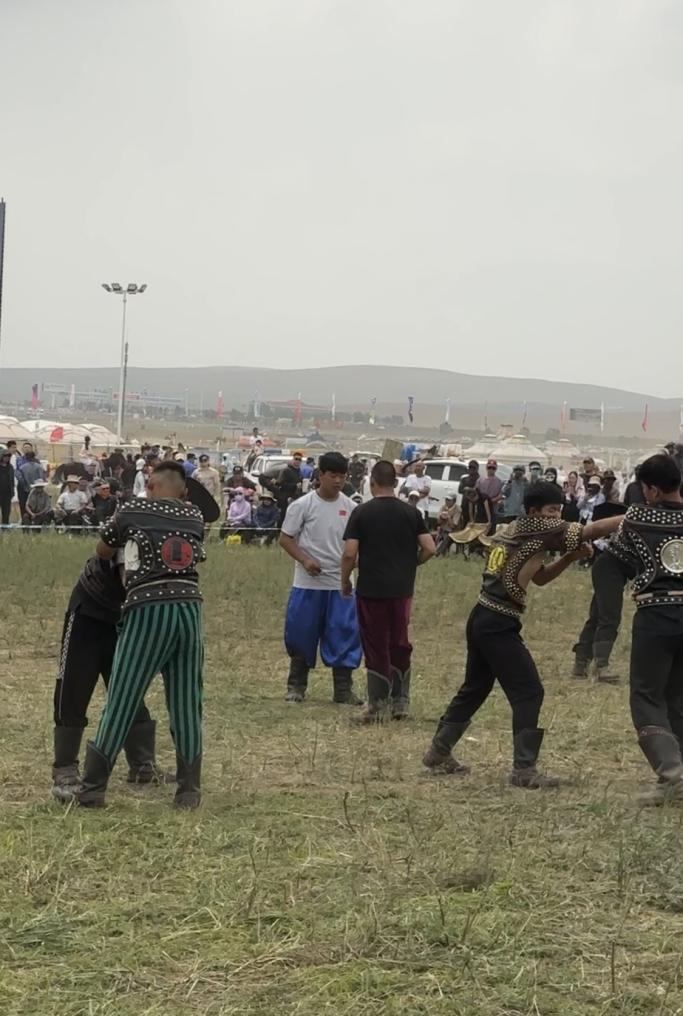 那達慕現(xiàn)場同時進行多組搏克比賽