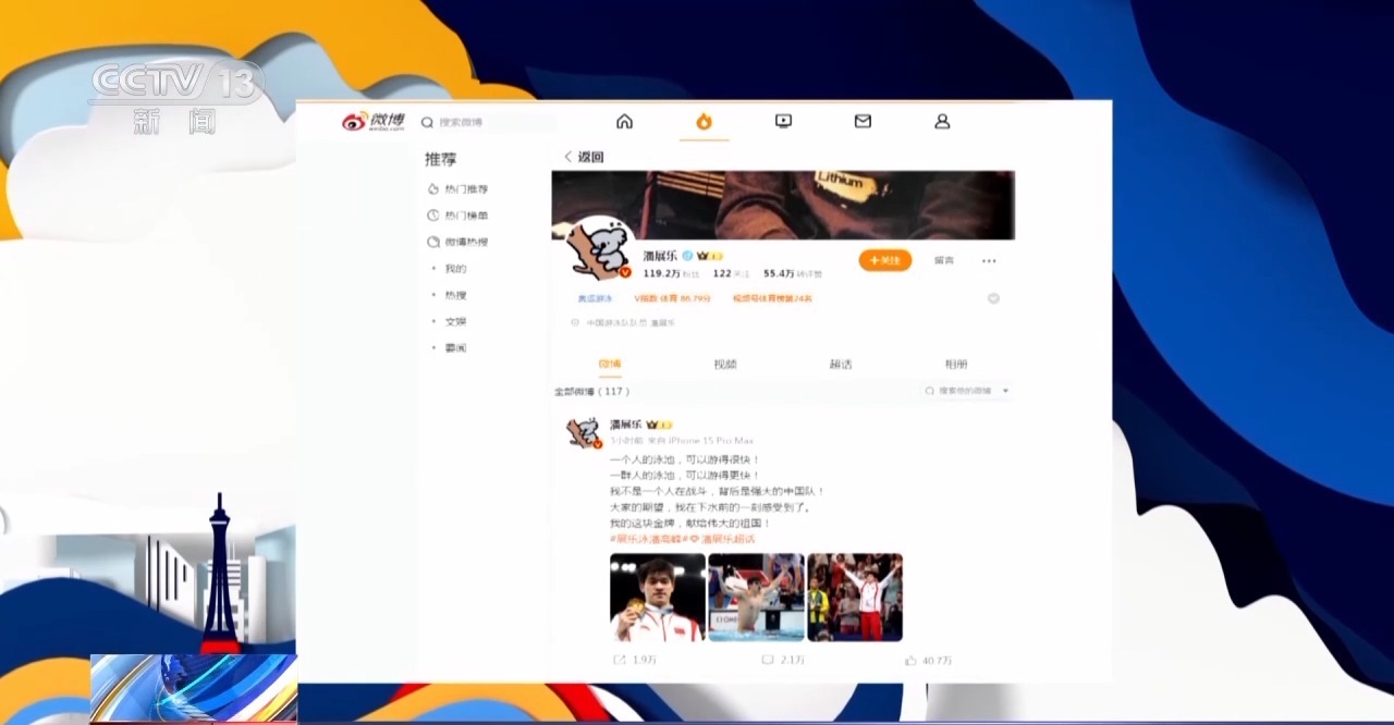 潘展樂在自己的微博里寫下,我的這塊金牌,獻(xiàn)給偉大的祖國!