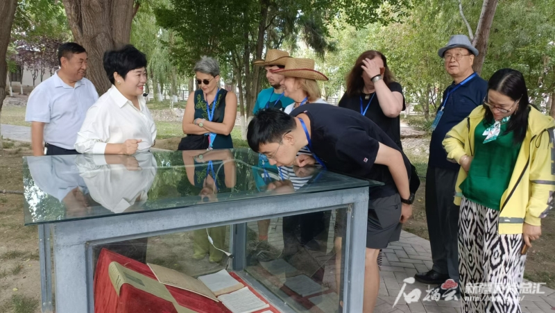 8月16日,中外漢學(xué)家、翻譯家、作家在察布查爾錫伯自治縣察布查爾報社參觀。石榴云/新疆日報記者 宋衛(wèi)國攝