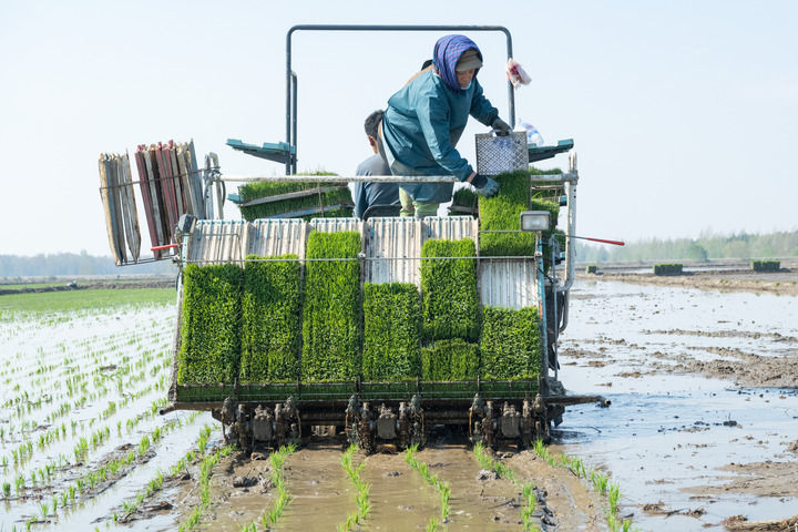 在黑龍江北大荒集團前哨農(nóng)場有限公司,農(nóng)民駕駛插秧機進行水稻插秧作業(yè)(2024年5月8日攝)。新華社記者 謝劍飛 攝