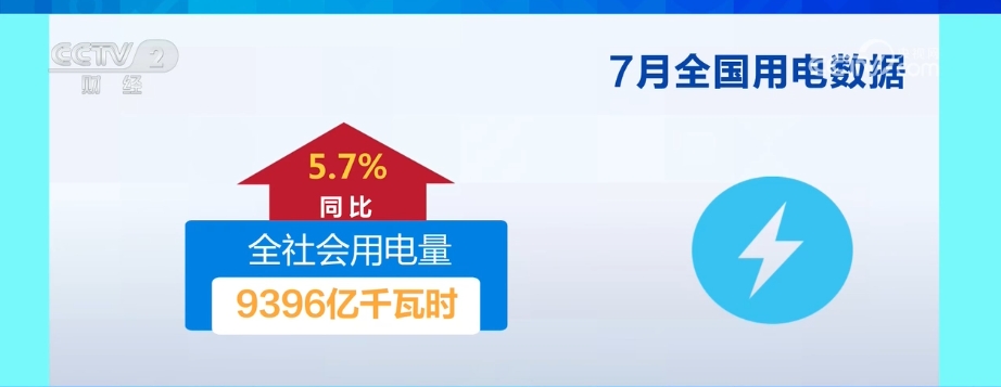入夏以來(lái),全國(guó)多地出現(xiàn)持續(xù)性高溫天氣,最大用電負(fù)荷快速攀升,電力供應(yīng)保障有力有效。7月份,全社會(huì)用電量9396億千瓦時(shí),同比增長(zhǎng)5.7%。從分產(chǎn)業(yè)用電看,第一產(chǎn)業(yè)用電量142億千瓦時(shí),同比增長(zhǎng)1.5%;第二產(chǎn)業(yè)用電量5656億千瓦時(shí),同比增長(zhǎng)5.0%;第三產(chǎn)業(yè)用電量1871億千瓦時(shí),同比增長(zhǎng)7.8%;城鄉(xiāng)居民生活用電量1727億千瓦時(shí),同比增長(zhǎng)5.9%。