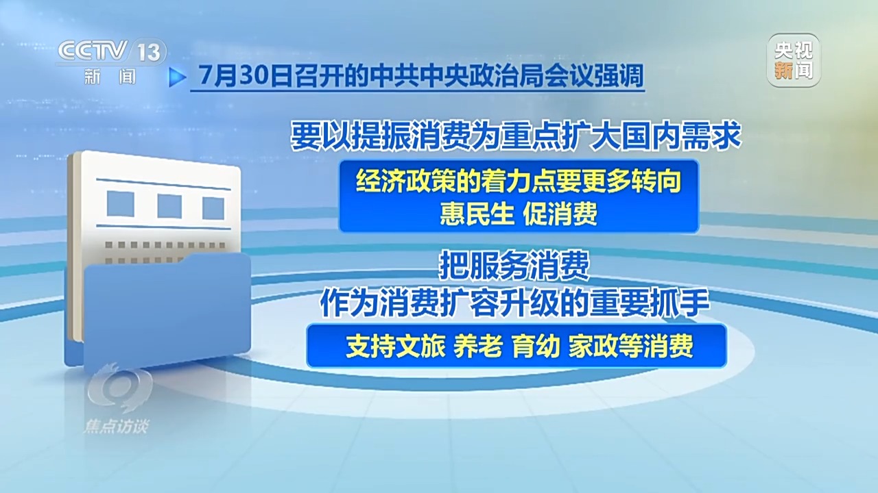 服務消費是釋放消費潛力的重要力量。7月30日召開的中共中央政治局會議強調(diào),“要以提振消費為重點擴大國內(nèi)需求,經(jīng)濟政策的著力點要更多轉(zhuǎn)向惠民生、促消費,把服務消費作為消費擴容升級的重要抓手,支持文旅、養(yǎng)老、育幼、家政等消費。”國務院于8月3日印發(fā)《關于促進服務消費高質(zhì)量發(fā)展的意見》,提出“著力提升服務品質(zhì)、豐富消費場景、優(yōu)化消費環(huán)境,以創(chuàng)新激發(fā)服務消費內(nèi)生動能,培育服務消費新增長點”。這是我國首次專門就服務消費發(fā)展作出系統(tǒng)全面部署的政策文件。