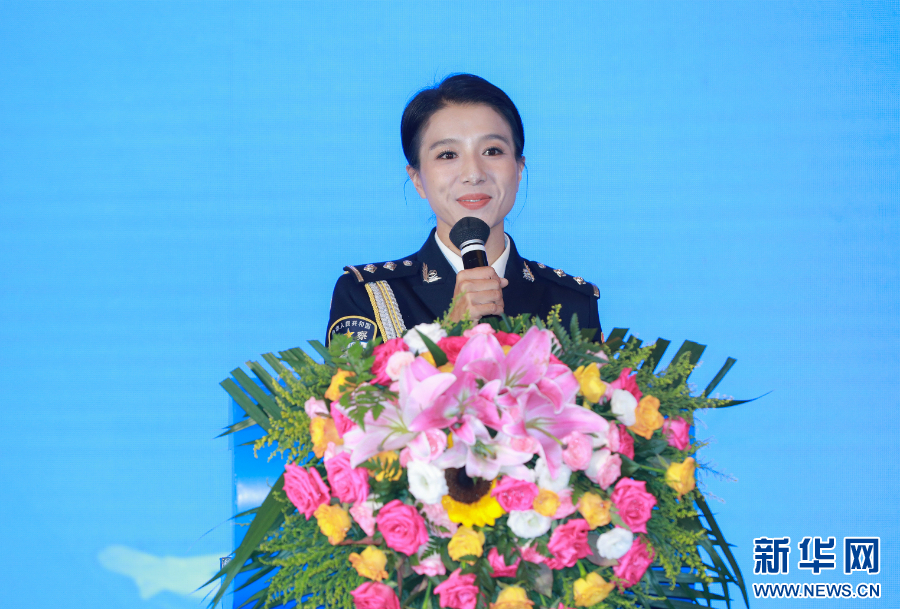 李虹霏在分享打造“茶城森警”新媒體賬號的經驗做法(攝于8月22日)。新華網發(fā)(供圖)