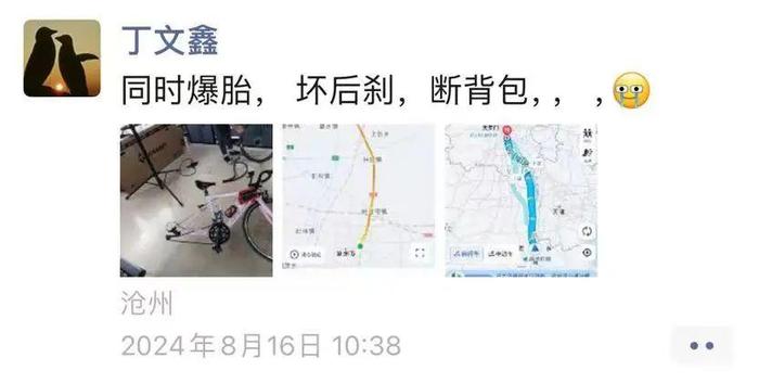 與此同時(shí),丁文鑫也經(jīng)歷了中暑、遇到了暴雨,居無(wú)定所、食無(wú)常地、晝夜顛倒、爆胎、壞剎車(chē)更是常事……