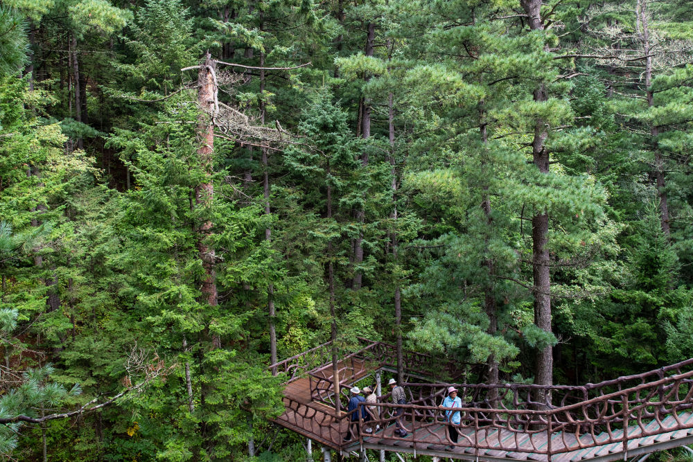 8月27日,游客在黑龍江伊春市上甘嶺溪水國家森林公園內(nèi)游覽。