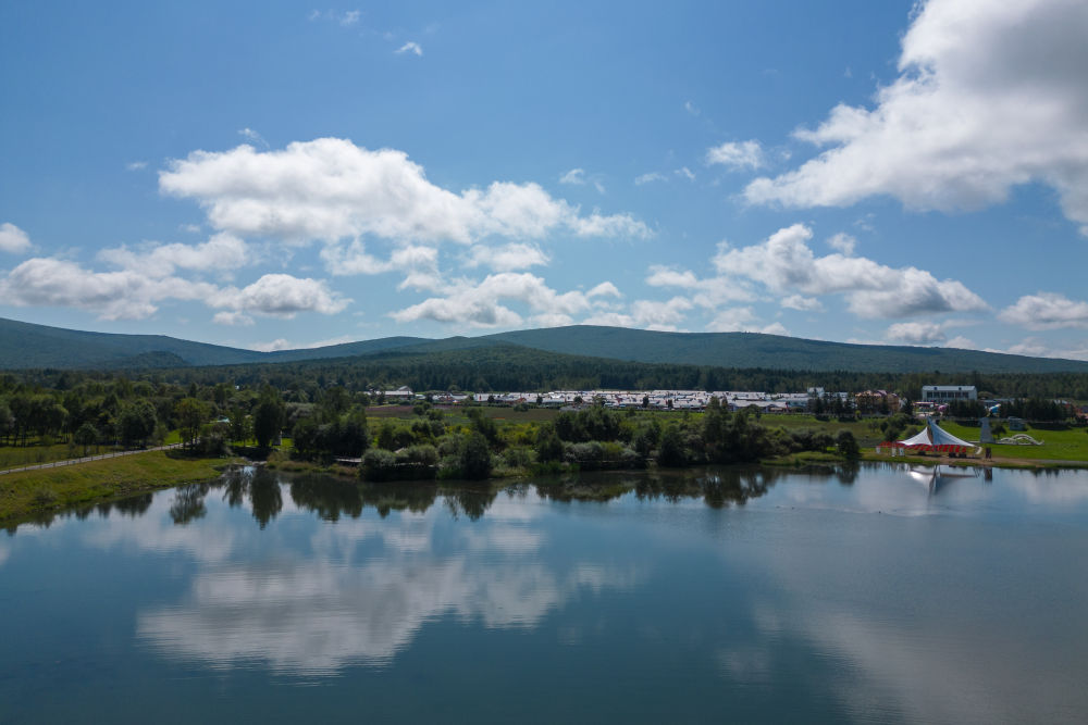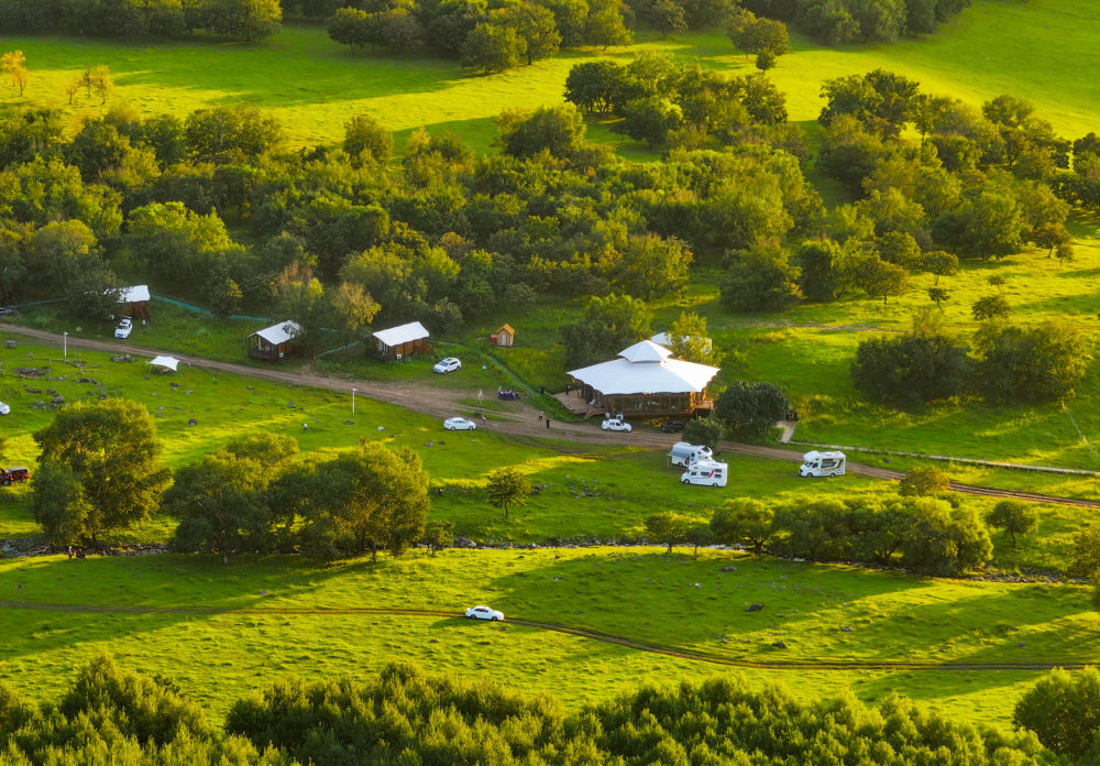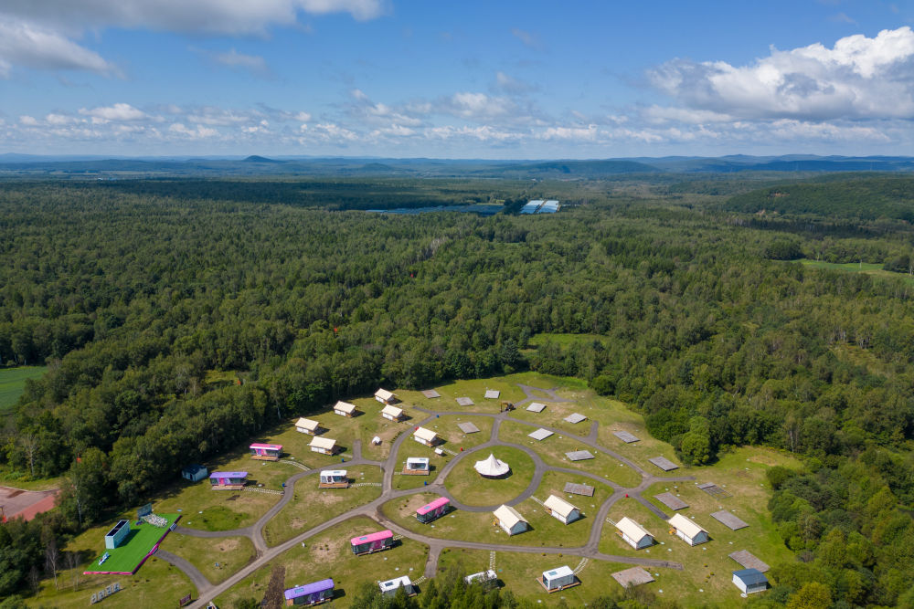 這是8月27日拍攝的黑龍江伊春森工集團(tuán)上甘嶺林業(yè)局公司溪水林場的溪水野奢帳篷度假酒店項(xiàng)目(無人機(jī)照片)。